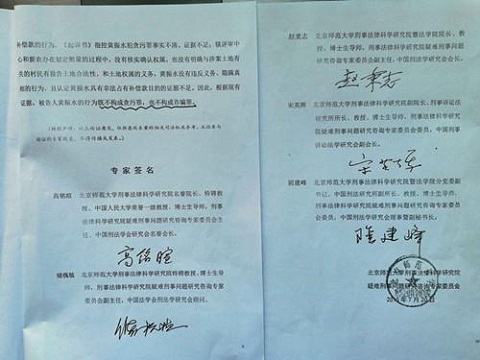 “黄振水被带走之后,办案人员找我和金树忠问了一些相关情况。他们用大电脑做了笔录。没让我们看,就让我们签字,我们也没想那么多,就签了字。第一次开庭时才知道,我们说的他们没有记录,他们记的不是我们说的。我俩就找到检察院抗议,但没人理。”李明称,“他们第一次说他(黄振水)诈骗,后来又说是贪污,我们非常气愤!第一次开庭村里就去了300多人。村民自发地为他喊冤,黄振水太冤了,全村总人口1500多人,成年人1200多人,摁手印的有1000多人。”