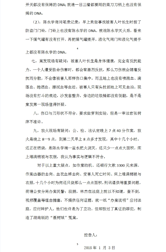 对于以上重大疑点,如作案动机、还银行欠款3300元来源、作案凶器的去向、血衣血裤去向、受害人死亡时间、床上堆满棉被与衣服,十几个小时为何还只烧那么一点点面积,刑讯逼供等重要问题,荷塘公安分局办案民警:段鹏,林杰在法庭上就以不知道,查不到,视频覆盖等理由搪塞,不提供任何证据,就一纸“办案说明”应付法庭,应付辩护人。他们也许是为了立功,但却放过了真证的罪犯,制造了湖南版的“聂树斌”冤案。