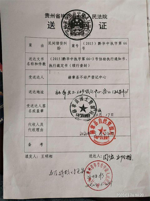 附件3:贵州省毕节市中级人民法院执行局送达回证;