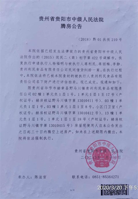 附件1:贵州省贵阳市中级人民法院腾房公告;