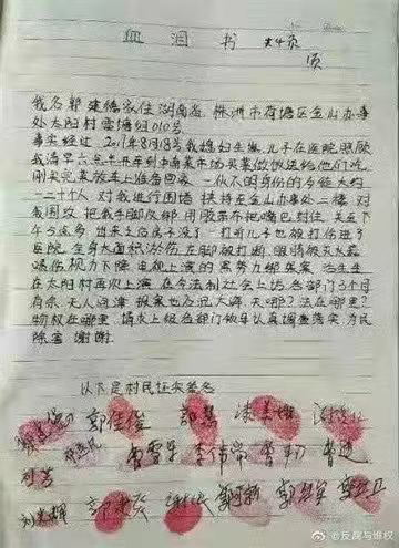 (二)控告人之子(郭佳俊)的爱人于2017年8月17日23时在株洲市中心医院分娩,于次日早上8:――8:30分与父母(指控告人夫妻)曾无数次电话联系未果之下(联系不上的原因是被办事处非法拘禁)并回家拿婴儿的衣服及自己的换洗衣服。当离家只有30――40米之间的距离时,被二三十人团团围住,并用灭火器喷射双眼,此惨无人道悚詟惊魂!接着是一顿毒打,经法医鉴定为轻伤一级。