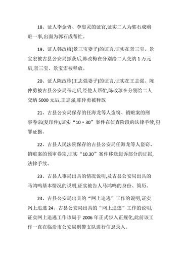 5、马鸿鸣为了贪赃!第五次实施包庇、释放盗窃犯杨宝书、吕长青、侯鹏,销赃犯樊勇,不向检察院移送起诉。使其4人逃避了法律的制裁。(上述四次抓、放的名单中可以看出有多人是连续作案 ,马鸿鸣已把这些人当成他收敛钱财的摇钱树)