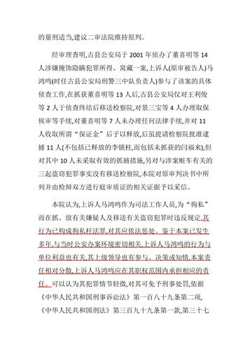 这一认为充分说明,当时的古县公安局涉嫌徇私枉法,不仅仅是马鸿鸣一人,而是上下勾结,沆瀣一气、蛇鼠一窝、群狼式的团伙贪赃枉法,这种团伙作案能作为免予马鸿鸣刑责的理由吗?法律对“ 团伙作案”的认定只是加重的情节,而不是减轻刑法的情节。